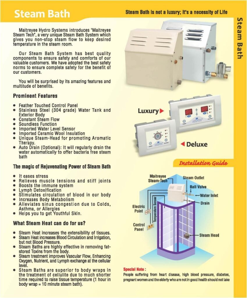 Maitreyee Hydro Systems, established in 2005, is a leading manufacturer and solution provider of Steam Bath, Sauna Bath, Booster Pumps, Hydro Pneumatic Pressure Boosting Systems, and Swimming Pool Filtration Systems. With over 20 years of industry expertise, we deliver reliable, energy-efficient, and customized systems for residential, commercial, hospitality, and industrial projects across India.